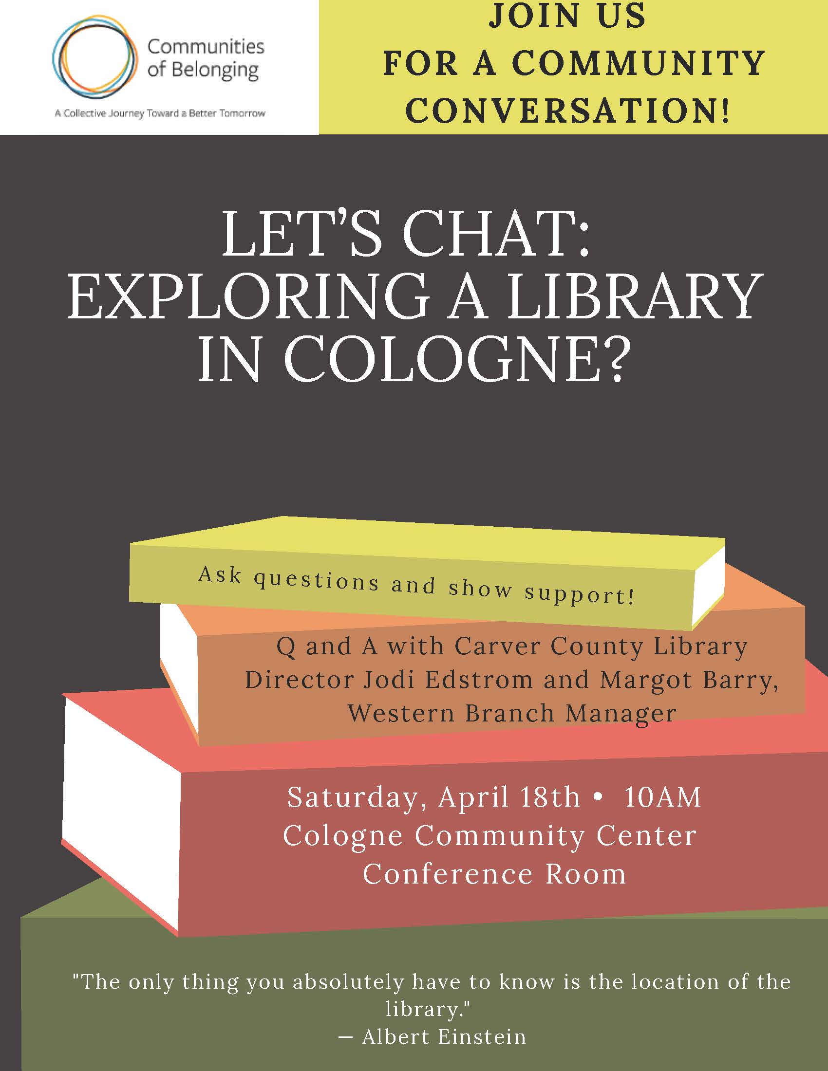 Below are links and information about various community events. We’ll do our best to keep it as up to date as possible. If there is an event you don’t see listed here, contact us at info@colognemn.com and we’ll consider adding it.