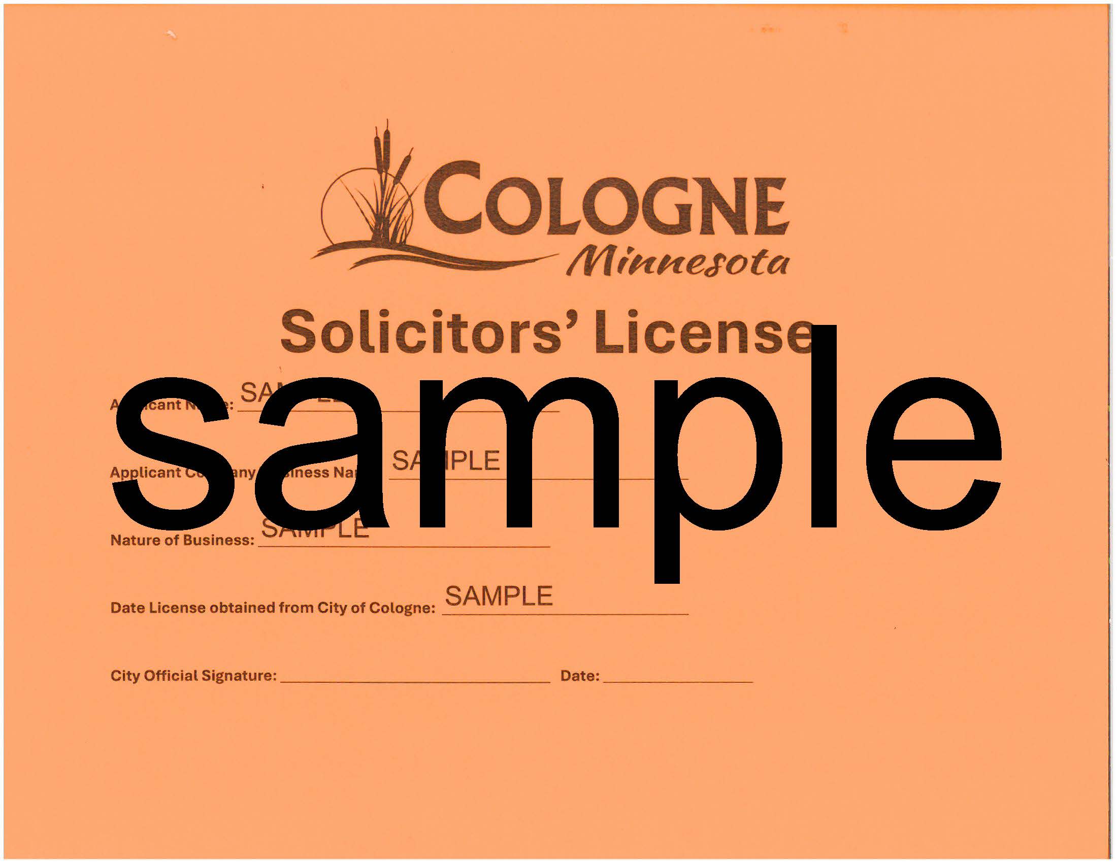 Renewal by Anderson, Matthew and Tanner, have pulled the correct permit/license to peddle in the City of Cologne. Please feel free to ask them for their licenses.